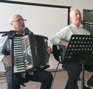 Na zakończenie sesji nie mogło zabraknąć kresowych melodii w wykonaniu Andrzeja i Janusza Ałajów. Słodkim podsumowaniem spotkania była degustacja tortu oraz lwowskiej kawy.