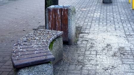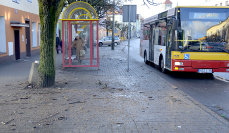 Wraz z odwilżą znikł śnieg, w tym również z miejskich chodników. Ba, śliskość co prawda ustąpiła, ale za to wyszły na jaw wszelkie brudy i nie tylko. Przed przystankiem autobusowym na ul. Odrodzenia na chodniku widać obecnie walające się gałązki opadłe z drzew i piasek, który był sypany na trotuar. Aż trudno po czymś takim chodzić. Kawałek dalej, gdybyśmy szli w kierunku ronda, trafimy na kącik wypoczynkowy, czyli ławkę wraz z koszem na śmieci. Te sprzęty zostały z kolei gęsto „udekorowane” przez ptactwo.