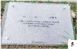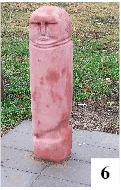 Sam park, poza tymi dwoma niedopatrzeniami, robi na pierwszy rzut oka niezłe wrażenie. Choinka odsłoniła znajdującą się w centrum babę dźwierzucką, chyba najbardziej radosną w całej grupie rzeźb. Pomalowaną ją w barwy gminne, czyli na zielono i żółto. Resztę babskiego grona stanowią betonowe repliki starych kamiennych posągów znanych z różnych miejsc dawnych Prus, czyli naszego regionu. Napisaliśmy „babskiego”, ale w istocie owe baby to najprawdopodobniej podobizny mężczyzn. Wyjątek mogłaby stanowić rzeźba przypominająca syrenę – tak głosi napis znajdujący się przed jednym z posągów (fot. 5). Trochę trudno zobaczyć tu trzymany w dłoni róg – podobnie jak syrenie atrybuty (fot. 6). Dodatkowo zdążyły się już częściowo zetrzeć informacje znajdujące się na karcie pod szybką. Owa postać to Potrimpus (Potrimpos) z Dzierzgonia – staropruskie bóstwo.