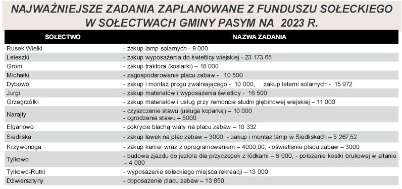 - Sporo środków sołectwa, i to już od kilku lat, przeznaczają na montaż oświetlenia ulicznego, dzięki czemu mieszkańcy mają większe poczucie bezpieczeństwa. Często też decydują się na doposażenie, bądź remont placów zabaw - informuje Tomasz Lachowicz, inspektor Referatu Rozwoju w Urzędzie Miasta i Gminy w Pasymiu.{akeebasubs !*}