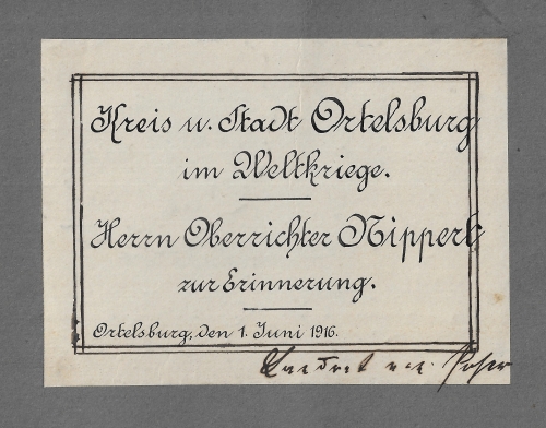 W jaki sposób album ten trafił aż do Stanów Zjednoczonych? Okazuje się, że był on podarunkiem od szczycieńskiego starosty dla Alfreda Kuno Nipperta. A. K. Nippert urodził się 12 czerwca 1872 we Frankfurcie nad Menem. Zmarł 6 sierpnia 1956 w Asheville w Północnej Karolinie. Był sędzią Common Pleas Court of Cincinnati. Aktywnie działał w niemiecko-amerykańskiej społeczności Cincinnati. Po wybuchu I wojny światowej zajął się organizowaniem pomocy wojennej dla Niemiec i Austro-Węgier. W marcu 1916 roku został wybrany wiceprezesem oddziału Cincinnati Amerykańskiej Komisji Pomocy Wojennej dla Prus Wschodnich. Wygłaszał też pogadanki na temat spustoszenia Prus Wschodnich przez rosyjskie hordy. Zajmował się więc proniemiecką propagandą, bo niemieckie hordy wcale lepiej się od rosyjskich w trakcie tej wojny nie zachowywały. Najprawdopodobniej miał też okazję spotkać się z cesarzem Wilhelmem II. Ciekawe jak jego działalność odebrano po przystąpieniu Stanów Zjednoczonych do I wojny światowej?