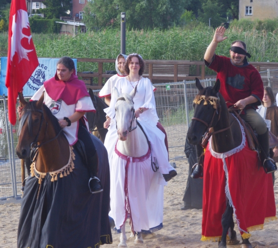 Tegoroczne Dni i Noce wpisywały się w jubileusz 300-lecia nadania Szczytnu praw miejskich. Stąd nie mogło zabraknąć rocznicowych akcentów, zwłaszcza podczas otwarcia święta grodu. Rozpoczęcie imprezy miało szczególny charakter nie tylko z tego powodu. Bodaj pierwszy raz w historii Dni i Nocy uczestniczyła w nim tak liczna reprezentacja polityków, co zapewne należy tłumaczyć zbliżającymi się wyborami. W tym roku na powitanie Juranda przybyło dwoje wiceministrów – Olga Semeniuk – Patkowska i Błażej Poboży oraz jedenaścioro parlamentarzystów. Wśród nich najliczniejszą ekipę stanowili posłowie Lewicy na czele z wicemarszałkiem Włodzimierzem Czarzastym i posłem Adrianem Zandbergiem. Organizatorzy nie przewidzieli na szczęście ich wystąpień ze sceny. Zaszczytu tego dostąpił tylko burmistrz partnerskiego Żywca Antoni Szlagor. Po uroczystym otwarciu i przekazaniu klucza od bram miasta Jurandowi, dokonano wpisów do Złotej Księgi. Uhonorowani w ten sposób zostali główny sponsor imprezy – Bank Spółdzielczy, a także Stowarzyszenie Humanitarne „Dar Serca”, które od ponad 20 lat prowadzi świetlicę socjoterapeutyczną dla dzieci z ubogich rodzin. Po nich swój wpis złożył też pochodzący ze Szczytna DJ Wilga. Piątkowy koncert rozpoczął szczycieński zespół Dravar. Potem przyszła pora na bardziej taneczne rytmy. Dyskotekę pod gwiazdami poprowadzili DJ Wilga i DJ Gromee.