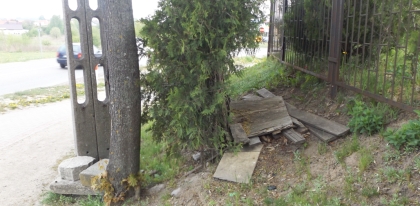 Swego czasu postulowaliśmy zainstalowanie na naszej nekropolii lamp, które szczególnie w sezonie jesienno-zimowym poruszanie się po cmentarzu czyniłyby bezpieczniejszym. To zapewne wiąże się ze sporym wydatkiem, ale pomysłem niekosztującym w zasadzie nic byłoby odsunięcie od krawędzi jezdni stoiska, na którym sprzedawane są znicze. Mowa o okolicach bramy położonej w niższej części cmentarza (fot. 5.). Jak widać na zdjęciu, kupujący stoją na jezdni – i tak jest od lat. Ulica nie ma jakiegoś specjalnego statusu zwiększającego bezpieczeństwo pieszych, taka lokalizacja stoiska (znajdującego się tuż przy zakręcie) grozi wiadomo czym. Przy cmentarnej bramie górnej takiego problemu nie ma – tam stoiska od jezdni oddziela chodnik. Dziwi nas również trochę to, że handel odbywa się w kramikach, które nie zawsze wyglądają estetycznie („Kurek” pisał o tym pod koniec ubiegłego roku). Jakoś nikt nie wymógł postawienia chociażby kontenerowych sklepików, czyli czegoś normalnego w bezpośrednim sąsiedztwie odwiedzanych przez nas cmentarzy Warmii i Mazur czy Mazowsza. Niektóre ze stoisk poznikały – zlikwidowano te sprzed wejścia na starą część cmentarza. Czasu upłynęło sporo, ale resztki wciąż się walają (fot. 6).