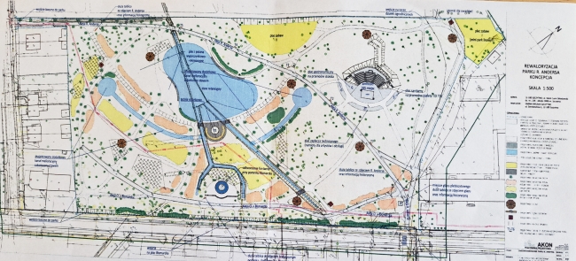 Mapka, która wywołała burzę, przedstawia koncepcję rewitalizacji parku przy ul. Skłodowskiej, którą miesiąc temu burmistrz przesłał radnym miejskim. Jej autorem jest firma z Olsztyna AKON Anna Cejnowa. To pierwszy element pełnej dokumentacji, za którą miasto zapłaci 146 tys. zł. Całość ma być gotowa do końca bieżącego roku. Wstępny projekt przewiduje m. in. umieszczenie przy wejściu i wyjściu z parku dwóch dużych tablic ze zdjęciem Richarda Andersa i informacją historyczną. Głównym dwóm alejkom autorzy projektu przypisali nazwy O. Bismarcka i R. Andersa.