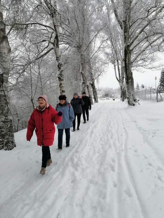 Spacer wokół jeziora Dużego Domowego grupie Marszowe Czwartki dostarczył moc zimowych wrażeń.