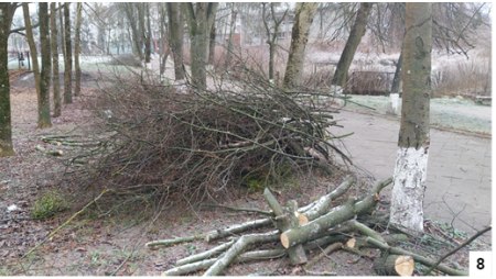 usytuowanej przy ul. Kętrzyńskiego. Wszystkie okazy rosnące przy alei prowadzącej do placówki tam zostały, ale poprawiono estetykę tamtego miejsca, przycinając gałęzie (fot. 8).