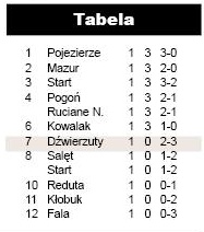 W Dźwierzutach zmierzyły się drużyny mające za sobą epizody w klasie okręgowej. Górą byli goście. GKS prowadził po strzale Malewicza, ale po zmianie stron Start odpowiedział trzema kolejnymi bramkami.