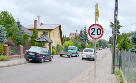 Nie wszystko jednak, co na pierwszy rzut oka wydaje się efektem niszczycielskich działań wandali, takie jest w rzeczywistości. Oto obrazek z ulic miasta, z terenu osiedla Kochanowskiego, a konkretnie przedstawiający ul. Chopina. Na tej ulicy, o czym było wcześniej, także niektóre znaki zostały obrócone. Dotyczyło to jednak tych, które ostrzegały przed przeszkodą poprzeczną i ograniczały prędkość do 20 km/godz. Ich obrócenia tym razem dokonały służby miejskie, a wynikło to powodu remontu ul. Gnieźnieńskiej. W związku z nim miejskie autobusy jeżdżą teraz ul. Chopina, na której były usytuowane progi zwalniające. Cóż, przepisy drogowe nie zezwalają na ich instalację na drogach, po których jeżdżą autobusy, to i progi zostały zdemontowane, a znaki przekręcone, bo stały się nieważne. Niby wszystko w porządku, ale jak widzimy na zdjęciu, tabliczka z ograniczeniem prędkości do 20 km/godz. nie została obrócona i co? Trzeba w tym miejscu zwolnić do wymaganej wielkości i utrzymywać ją do najbliższego skrzyżowania, a to przecież bez sensu.