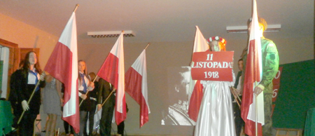 Uczniowie gimnazjum pod kierunkiem Natalii Jakubowicz i Izabeli Chrzanowskiej wykonali kilka pieśni patriotycznych ilustrujących historyczne wydarzenia opowiedziane wierszem i prozą.