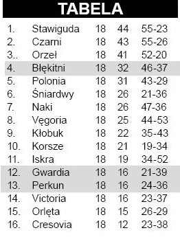 Błękitni: Brzozowski (85. A. Olszewski), Król, Świercz (73. Michał Łukaszewski), Stańczak, Młotkowski, Gwardiak, Zimerman (80. Ciesielski), Kulesik (70. Niestępski), Krupiński (82. Karkotka), Marcin Łukaszewski, P. Malanowski (76. R. Malanowski).