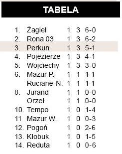 Perkun: Olender, Ciężar, Kacprzak, M. Marszałek, Olszewski (67. Kulesza), Osenkowski, T. Marszałek, Laskowski, Śledziński, Kobus, Żebrowski.