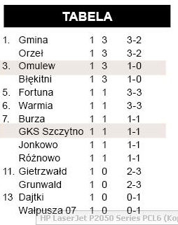 W najbliższy weekend zagra z MKS-em Jeziorany, który po fatalnym występie w pierwszej kolejce (0:6) potrafił się pozbierać i w minioną sobotę odnieść zwycięstwo.