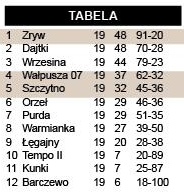 W Zabielach doszło do sporej niespodzianki, bo zastopowany został tam lider, jedyny zespół, który do tej pory nie przegrał meczu. - Drużyna Wałpuszy od początku zagrała pewnie i uważnie – komentuje zadowolony trener gospodarzy Cezary Kuciński. - Wszystko nam wychodziło.