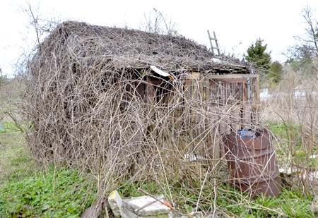 Kiedy w jednych miejscach zaniedbane działki przywracane są do stanu użytkowania, w innych dzieje się odwrotnie. Nieopodal opisywanego miejsca, ale już przy ul. Śląskiej, ciągnie się spory, niezagospodarowany teren, którego część zajmują ogródki działkowe. Niestety, sprawiają one wrażenie opuszczonych i od lat już nieuprawianych. Domki podobnie, stoją opustoszałe, a pośród nich wypatrzyliśmy taki, który gęsto porosły pnącza aż po sam dach, łącznie z drzwiami, że nie sposób obecnie wejść do środka.