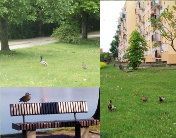 Są zwierzęta, za którymi nie przepadamy, i są takie, których pojawienie się w trochę nietypowych miejscach poprawia nasz humor i zachęca do dłuższego przyjrzenia się stworzonkom. W ostatnim czasie „Kurek” wraz ze swoimi Czytelnikami miał okazję obserwować kaczki krzyżówki poza ich środowiskiem naturalnym. Kaczka dziwaczka z tekstu Jana Brzechwy zamiast trzymać się rzeczki, robiła piesze wycieczki. U nas rzeczek raczej nie ma, są za to inne zbiorniki i to właśnie tam (lub w bezpośrednim sąsiedztwie) kaczki zazwyczaj przebywają. Zazwyczaj, bo mogą oddalić się nieco od swoich rewirów (fot. 7). Pary krzyżówek spotkamy na skwerku między ul. Sportową i Polską w sporej odległości od oczek wodnych na Małej Bieli, tajemniczy kaczy trójkąt zapędził się aż na osiedle w rejonie ulic Solidarności i Nauczycielskiej, a samiczka singielka postanowiła, niczym kura, przysiąść na grzędzie, w