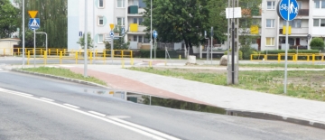 Tak wygląda podwójne przejście przy skrzyżowaniu z ul. Niepodległości (fot.2). Pasy są częściowo wytarte, a znaki pionowe postawiono tu tylko w liczbie 1 (słownie „jeden”, choć powinny być cztery). Z przejść korzystają np. osoby idące do pobliskiego kościoła bądź stamtąd wracające. Kierowcy miejscowi o tych niby-przejściach wiedzą i zwalniają, ale korzystający z ulicy przyjezdni przejść mogą nie dostrzec. Jeszcze dziwniej wyglądają zebry za przejazdem kolejowym (fot. 3). Pasy są także wytarte, a znaków pionowych nie ma wcale. Oznakowanie kolejnej pary przejść, tym razem przy skrzyżowaniu z ul. Osuchowskiego (fot. 4, widok od strony ul. Leśnej) także nie rzuca na kolana, a wręcz przeciwnie. Pasy są tu praktycznie nieczytelne, a nad bezpieczeństwem ma czuwać po jednym znaku D-6. Koniec wieńczy dzieło – sto kilkadziesiąt metrów dalej, czyli tam, gdzie ul. Bohaterów Westerplatte przechodzi w Leśną, pasy są jako tako widoczne, ale znaków pionowych nie wstawiono z żadnej strony (fot. 5).