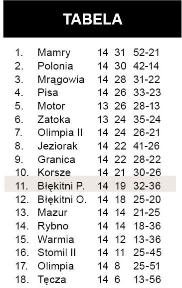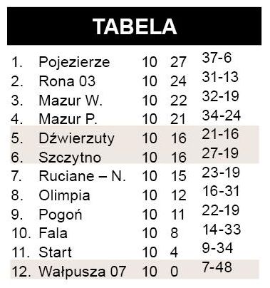 Błękitni blisko środka tabeli *SKS górą w Wielbarku* Dwie przegrane GKS-u Szczytno* Dźwierzuty powstrzymały Falę* Dziesiąta porażka Wałpuszy