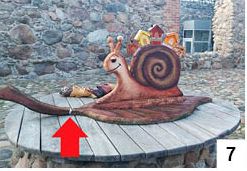 Natura nie znosi próżni. Przed dwoma tygodniami informowaliśmy, że Zygmunt Rząp, znany m.in. z rzeźbiarskiej pasji, zabrał swoje prace z zamkowych ruin. Powodem miało być niedogadanie się z miejskimi władzami w sprawie statusu owych rzeźb. Wśród nich znajdował się ślimak – ikona sieci Cittaslow, do której należy Szczytno. Drewniany ślimak znajdował się na zamkowym dziedzińcu. Nie minęło kilka dni – i pojawił się nowy, choć już nie autorstwa Zygmunta Rząpa (fot. 7). Ślimak wygląda sympatycznie, ale listek, po którym pełznie, ma się jakby gorzej…