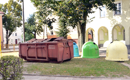 - Jak to wygląda – skarżył się nam mieszkaniec bloku nr 5 przy ul. Ogrodowej, wskazując zdezelowany kontener na odpadki i pojemniki typu „dzwony” wyeksponowane przez administratora na środku trawnika przy skrzyżowaniu z ul. 3 Maja.