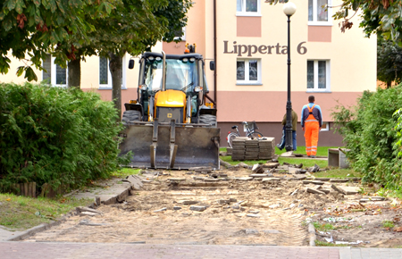Cóż, okazało się, że kontener, jak i pojemniki, ustawiono w tym eksponowanym miejscu tylko tymczasowo. Akurat Spółdzielnia Mieszkaniowa „Odrodzenie” przebudowuje stare ich stanowiska. Praca tam wre, co widać na zdjęciu.