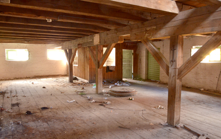 Będąc na ul. Ogrodowej, zerknęliśmy jeszcze na sławetną dziurę po kinie „Jurand” i stary młyn, z którego coraz większymi płatami odpada tynk. Kiedyś po jego wnętrzach oprowadzał nas opiekun obiektu, dzięki czemu mogliśmy oglądać m. in. część kamiennych żaren, które zachowały się do dziś. Obiekt był wówczas zamknięty, czego nie da się powiedzieć dzisiaj. Wejście od strony blaszanych garaży uległo zniszczeniu. Rozpadła się cześć muru okalającego schodki i wspinając się po rozpadających się stopniach, można zajrzeć poprzez próg, bo drzwi tu nie ma, do środka obiektu – na poziom I piętra.