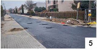 Łagodna aura teoretycznie powinna sprzyjać finalizowaniu bądź choćby kontynuowaniu inwestycji drogowych. Tych trochę w samym Szczytnie mamy. Powoli kończą się prace związane z przebudową ul. Wiejskiej. W ubiegłym tygodniu wylano tu niższą warstwę asfaltu. Jak widać, w paru miejscach brakowało do końca minionego weekendu także fragmentów chodnika (fot. 5) . Teoretycznie prace rozpoczęte wiosną (otwierał je poprzedni burmistrz Krzysztof Mańkowski) powinny zostać zakończone na początku drugiej połowy listopada, ale z terminowością wykonywania u nas tego typu robót jest, jak jest. Swoje przeżyli w ostatnich latach m.in. mieszkańcy Rozóg, którzy nie mogli się doczekać dokończenia modernizacji przebiegającej przez tę miejscowość drogi krajowej.