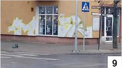 Niestety, centrum Szczytna w ostatnich tygodniach czy miesiącach zrobiło się brzydsze, a to sprawka niespełnionych artystycznie grafficiarzy, którzy koniecznie chcieliby zaistnieć. Mieliśmy wrażenie, że już jakiś czas temu dość bezmyślne sprejowanie ścian trochę się przejadło i znudziło, ale najwyraźniej było to błędne przekonanie. Na wielu budynkach szczycieńskiego śródmieścia, w miejscach widocznych dla przejeżdżających i przechodniów, wymalowano bazgroły, które prawdopodobnie miałyby o czymś świadczyć (fot. 9, 10.) . Tylko o czym? Trudno im się równać z pracami plastycznymi, zdobiącymi chociażby smutne i szare wcześniej garaże przy miejskim targowisku.