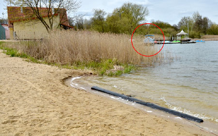 Kiedyś „Kurek” postulował, aby miejska plaża stykała się bezpośrednio z terenem bazy. Wystarczyłoby tylko wyciąć trzciny i to na niewielkim odcinku, co widać na kolejnym zdjęciu.