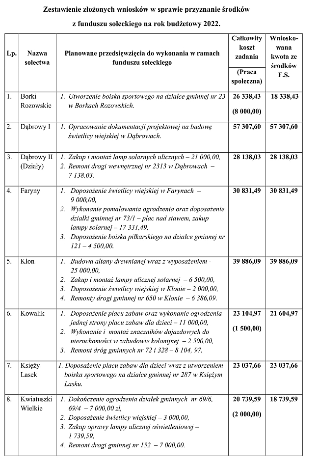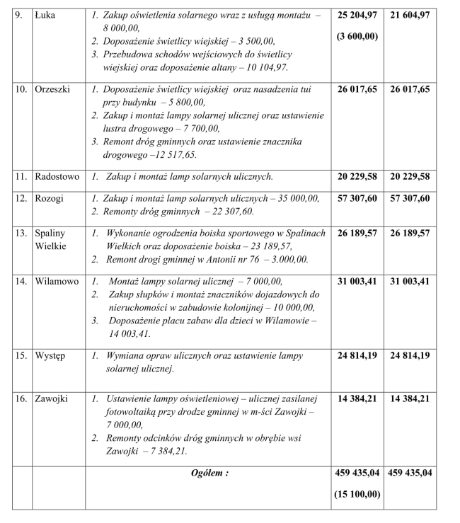 Największe kwoty – po 53,7 tys. zł przypadną sołectwom Rozogi i Dąbrowy.{akeebasubs !*}