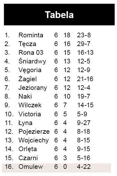 Marne pocieszenie dla Omulwi to fakt, że prawie połowa drużyn punktuje słabo i strata do nich nie jest zbyt duża. Najprostszy sposób na jej zmniejszenie to wygranie kolejnego spotkania.