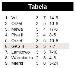 Mewa Smykowo - WTKS Mierki 11:1, CWKS 2020 Lamkowo – Vel Dąbrówno 1:3, Orzyc Janowo - Warmianka Bęsia 5:0. Pauzowała Pisa II Barczewo.{/akeebasubs}