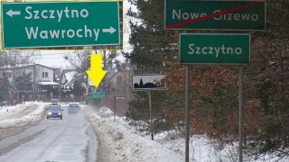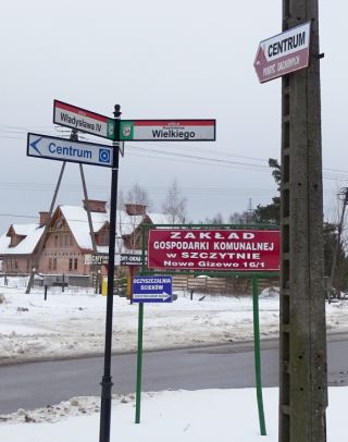 O tablicach drogowych znajdujących się już na terenie Szczytna, a mimo tego kierujących… do Szczytna pisaliśmy już ze dwie dekady temu. Czas mija, ale pewne absurdy pozostają. Nie mamy problemów z poruszaniem się po mieście i odnajdywaniem większości ulic, więc może dlatego nie zawsze zwracamy uwagę na pewne znaki. Ten, który znajduje się na ul. Kazimierza Wielkiego, należy do grupy znaków stosunkowo nowych, choć odświeżających starą niedorzeczność. Kawałek wcześniej znajduje się tablica żegnająca Nowe Gizewo i witająca Szczytno. Niemal od razu mamy informację o wjechaniu w teren zabudowany, a 100 m dalej – znak proponujący skręt w lewo, jeśli chcemy dostać się do Szczytna (fot. 7), czyli miejscowości, w której już jesteśmy. Na skrzyżowaniu, znajdującym się w Szczytnie (według map i pierwszej z tablic) albo jeszcze przed nim (według trzeciego znaku) pojawia się bardziej tu stosowna i lecząca z kompleksów małomiasteczkowości tabliczka z napisem CENTRUM (fot. 8). Żeby było śmieszniej, na jednym zdjęciu można uchwycić dwa znaki kierujące do centrów położonych w trochę innych miejscach. Owo drugie centrum to firma handlowo-usługowa znajdująca się, o ile dobrze kojarzymy, już poza miastem, a informację tę zobaczą kierowcy jadący od strony Szczytna, przepraszamy, centrum.