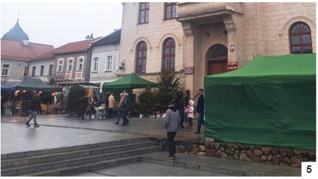 Zimowa aura na razie odpuściła, nie znaczy to wcale, że znikła przedświąteczna atmosfera. Wręcz przeciwnie – jest nieustannie budowana. Można odnieść wrażenie, że co najmniej w warstwie wizualnej o pewne sprawy dbamy z roku na rok coraz bardziej. Świąteczna dekoracja najładniej prezentuje się wieczorami – i to wtedy warto wybrać się na spacer, by podziwiać iluminację na głównych ulicach Szczytna (fot. 3) czy świecące ozdoby, które znajdują się także w innych miejscowościach powiatu. W Szczytnie i Pasymiu w centralnych punktach miast zorganizowano przedświąteczne jarmarki (fot. 4., 5.) , podczas których