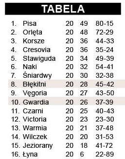 obliczył lot piłki i z wrzutki wyszedł gol podwyższający prowadzenie. Goście mieli szansę na bramkę kontaktową po strzale Nysztala, ale po interwencji bramkarza piłki nie dobili ani Nurkowski, ani Kowalczyk. Jedyny gol dla szczytnian padł z rzutu karnego podyktowanego za faul na Kulesiku. - Zagraliśmy niemrawo – przyznaje trener Mariusz Korczakowski. - W doliczonym czasie stwarzaliśmy zagrożenie tylko przy stałych fragmentach. Remis można było spokojnie osiągnąć, Vęgoria niczego wielkiego nie pokazała. Najbliższy mecz z Victorią Bartoszyce zostanie prawdopodobnie rozegrany na stadionie przy ul. Ostrołęckiej. Murawa obiektu przy ul. Śląskiej ma być poddawana zabiegom pielęgnacyjnym.