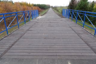 Chętni ustawili się w kolejce po grochówkę, a kto chciał, mógł poznać np. historię dawnej trasy kolejowej nr 262, powstałej ponad 100 lat temu – stulecia w wersji przejezdnej nie doczekała. Jeszcze na początku lat 90. ubiegłego wieku puszczano leżącymi wówczas torami nie tylko pociągi Szczytno-Biskupiec-Czerwonka, ale także znacznie dłuższe składy (chociażby Gdynia – Białystok) – podziwianie ciekawych widoków możliwe tu było, gdy remontowano linię Szczytno-Olsztyn, a zamiast autobusami zastępczymi pasażerów wożono „na okrętkę” (do Olsztyna ponad 80 km). Wkrótce linię – ze względów ekonomicznych połączonych z nie najlepszym stanem torowisk – zamknięto, a po latach rozebrano. Gdy szyny jeszcze były, pojawiły się plany, by urządzić tu przejazdy drezynami, ale na planach się skończyło. Po wielu perturbacjach doszło do powstania pierwszego odcinka rowerowej trasy długości nieco ponad 8 km. Nie wszyscy uczestnicy niedzielnego pikniku skorzystali z możliwości dojechania do końca wyasfaltowanej części ścieżki. Tak naprawdę od początku szlaku w Szczytnie do stacji w Ochódnie mamy trochę ponad 7 km, potem możemy jeszcze przejechać przez mostek z nawierzchnią z drewnianych impregnowanych desek (fot. 8.) i dopiero kawałek dalej asfalt się kończy (fot. 9). O tym, co jest dalej, napiszemy za tydzień. Dziś chcielibyśmy jeszcze wspomnieć, co znajduje się wcześniej.