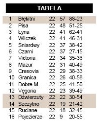 Zespół Mirosława Romanowskiego do minionej soboty choćby jednej bramki nie strzelił tylko raz: działo się to we wrześniu, gdy pasymianie przegrali z Czarnymi w Olecku. Rozstrzygnięcie z Barczewa najgorsze nie jest, bo jedyny w zasadzie rywal w walce o awans swojej sytuacji nie poprawił. - Obie drużyny miały po trzy sytuacje bramkowe – mówi najlepszy strzelec okręgówki Patrycjusz Malanowski. – Nasza drużyna była teoretycznie faworytem i to może zaważyło na braku skupienia i większej woli walki. Najlepszą okazję w 80. min stworzyła Pisa, ale Brzozowski zdołał końcami palców sparować piłkę.