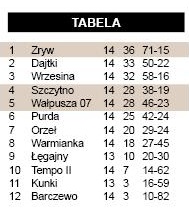 Trener Cezary Kuciński był zadowolony z występu swojego zespołu. - Plan został wykonany w stu procentach. Od początku do końca Wałpusza nadawała ton grze – słyszymy. Szczególnie wyróżnił stojącego między słupkami Sygnowskiego, który wybiegł na boisko mimo choroby.