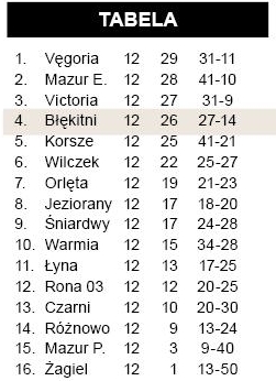 Start Kozłowo – Start Kruklanki 0:3, Pisa II Barczewo – Szansa Reszel 2:0, Salęt Boże – Warmianka Bęsia 4:3. Pauzowały Dajtki Olsztyn.{/akeebasubs}