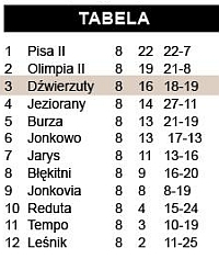 Pisa Barczewo - SKS II Novum Szczytno 0:6 (0:0); br.: Dominik Wieszczyński (15., 30., 70.), Mateusz Nagadowski (25.), Łukasz Zieliński (50.), Jakub Sosnowski (65.)