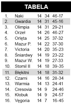 szczytnian w sezonie. Niezależnie od rozstrzygnięcia w derbowym meczu z Błękitnymi gwardziści zakończą rundę w czołowej trójce. Tak wysokiego miejsca zespołu ze Szczytna zwłaszcza młodsi kibice nie pamiętają.