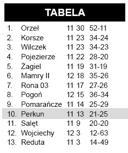 Bramki dla Perkuna: Mariusz Len (24.), Paweł Kobus (61., 89.)