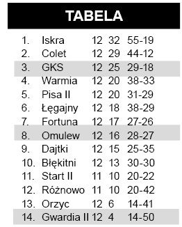 Omulew miała przed sezonem ambicje włączenia się do walki o czołowe miejsca, ale różne czynniki decydują o tym, że plany trzeba zweryfikować. Zespół z Wielbarka ma od pewnego czasu problemy z wygrywaniem spotkań – ostatnio sięgnął on po trzy punkty 20 września. Na boisku w Klewkach zanosiło się nawet na porażkę, ale remis uratował w końcówce Kacper Brodzik.