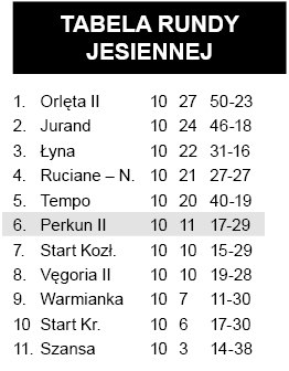 W meczu drużyn z dolnych rejonów tabeli emocji nie brakowało. Prowadzenie objął Perkun, ale gospodarze, podejmujący orzynian w Mrągowie, szybko zdobyli dwie bramki. Druga część meczu należała do przyjezdnych, jednak
