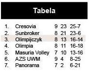 Efektem była gładka przegrana w trzeciej partii i dość wyrównany przebieg seta czwartego. W końcówce górę wzięło jednak doświadczenie szczytnian, którzy mogli dopisać trzy punkty do swojego konta. Nie powiększą go prawdopodobnie w najbliższy weekend, bo planowana jest wtedy kolejna pauza Olimpijczyka.