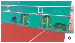 Nasza minitężnia ma już półtora miesiąca. Przez ten czas bodaj dwa razy była na krótko zamykana, co można wytłumaczyć tzw. chorobami wieku dziecięcego. Problemy z solanką czy pompą zrozumieć łatwiej, trudniej przejść do porządku dziennego nad tym, że od miesiąca na jednej z ławek znajdują się napisy (jeden z nich ma charakter zdecydowanie wulgarny) i do tej pory nie zostały w jakiś sposób usunięte (fot. 5) . Monitoring teoretycznie działa, a i do samej tężni przychodzą osoby związane z naszym ratuszem …Zastanawia nas zawsze to, co musi się dziać w głowach ludzi, którzy wpadają na doskonały w ich mniemaniu pomysł, by zniszczyć coś nowego. Nie jest to oczywiście problem tylko naszego miasta, ponieważ podobne indywidua znajdą się prawie wszędzie. Dla przykładu pokazujemy, co nie tak dawno zrobiono ze ścianką do tenisa znajdującą się przy oddanym do użytku rok temu stadionie w Biskupcu (fot.6 - www.facebook.com/people/Biskupiec-Krajobraz-Pełen-Możliwości). Przykładowy komentarz jednej z biskupieckich internautek mówi chyba wszystko: To tylko świadczy o wychowaniu dzieci przez rodziców, bo kulturę wynosi się z domu i to nie szkoła (jak większość rodziców uważa) wychowuje a rodzice!