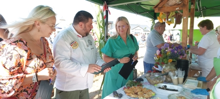 Każdy, kto w minioną niedzielę odwiedził Dźwierzuty, nie miał powodów do narzekań. Dopisała aura, a liczba stoisk gastronomicznych była imponująca. Wystawiły je sołectwa, koła gospodyń, Środowiskowy Dom Samopomocy w Dźwierzutach oraz Koło Łowieckie „Ryś”. Stoiska oferowały głównie dania kuchni regionalnej, stąd nie mogło zabraknąć m.in. mazurskiego kartoflaka, pierogów, wędlin z domowych wędzarni, chleba ze smalcem oraz różnego rodzaju słodkich wypieków. Z kolei myśliwi z koła „Ryś” serwowali prawdziwy myśliwski bigos. Dożynkom towarzyszył konkurs kulinarny „Jarmark smaku”. Jury w składzie: szef kuchni, nauczyciel przedmiotów gastronomicznych w ZS nr 2 w Szczytnie Michał Denesiuk, dyrektor Powiatowego Urzędu Pracy w Szczytnie Beata Januszczyk i sołtys Dąbrowy Agnieszka Rudnicka miało za zadanie wyłonić najsmaczniejszą potrawę na bazie zboża. Łatwo nie było, ale ostatecznie pierwsze miejsce zajęło Koło Gospodyń Wiejskich w Nowych Kiejkutach, które przygotowało pierogi w sześciu odsłonach. Drugie miejsce jurorzy przyznali KGW w Dźwierzutach za kotleciki z kaszy jęczmiennej z dodatkiem mięsa, a trzecie – KGW „Żurawinki” z Popowej Woli za pampuchy z dżemem mirabelkowo – cukiniowym.