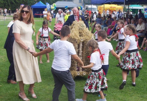 Wśród zaproszonych gości znaleźli się m.in.: wojewoda warmińsko – mazurski Artur Chojecki oraz posłowie Wojciech Kossakowski i Jerzy Małecki. Święto plonów rozpoczęła msza dziękczynna w intencji rolników. Po niej obrzęd dożynkowy zaprezentowali uczniowie Szkoły Podstawowej w Olszynach. Zgodnie z tradycją, gospodarz imprezy, wójt Sławomir Wojciechowski odebrał bochen chleba upieczonego z tegorocznych ziaren z rąk starostów dożynek – Jadwigi i Witolda Łoniewskich, rolników z Lipowca, a następnie podzielił się nim z przybyłymi. Włodarz w swoim wystąpieniu dziękował wszystkim pracującym roli, podkreślając, jak trudną wybrali profesję. - Rolnik to jeden z najtrudniejszych zawodów wykonywanych przez człowieka. Żeby osiągnąć dobry wynik w gospodarstwie, osiągnąć dobry plon, utrzymać rodzinę, musi na to pracować przez cały rok od świtu do zmroku – zauważał wójt, dodając, że często efekty rolniczego trudu niweczy niekorzystna, szczególnie w ostatnich latach, aura.