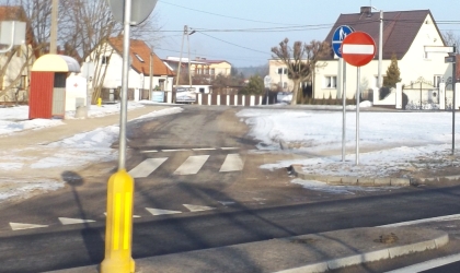Od strony wjazdu w ul. Broniewskiego przy skrzyżowaniu z ul. Piłsudskiego sytuacja jest czytelna, ale… Osoby nadjeżdżające z drugiej strony ul. Broniewskiego i próbujące wjechać w ul. Piłsudskiego „po staremu”, czyli naturalnym skrótem, zgłaszały nam, że spotkała je niespodzianka. Otóż nie postawiono tam znaku zakazu skrętu w prawo i dopiero po fakcie można było zobaczyć wysoko umieszczony znak zakazu wjazdu (fot. 8). Gdy lustrowaliśmy ul. Broniewskiego pod koniec minionego tygodnia, doszliśmy do wniosku, że przydałby się jej solidny remont. Ulica ta była wykorzystywana jako objazd w późniejszej fazie przebudowy DK 53 i nawierzchnia jest miejscami poważnie zniszczona (fot. 9). Przypomnijmy, że ul. Broniewskiego kursują autobusy, których masa nie poprawi z pewnością stanu takiego, a nie innego asfaltu.