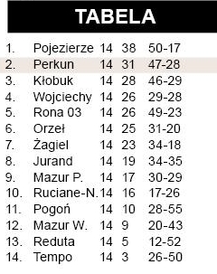 Perkun zdecydowanie poważnie myśli o walce o klasę okręgową, a dowodem jest mecz z innym kandydatem do awansu. Spotkanie, wbrew wynikowi, nie było praktycznie jednostronnym widowiskiem. Dość wspomnieć, że Marcińczyk wybronił w niedzielę dwa rzuty karne. Po zmianie stron goście dorzucili jeszcze piątego gola. W końcówce w szeregi zespołu przyjezdnych wdarło