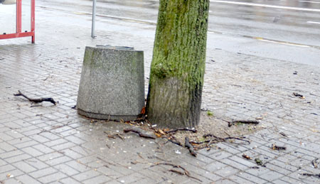 - Trzeba wkładać kalosze, gdy pada, bo płytki chodnikowe pokryte są wówczas śliską breją utworzoną z ptasich odchodów – skarży się Czytelniczka. Ale nie wszystko. Wokół pobliskiego kosza i pod rosnącym obok drzewkiem na chodniku wala się mnóstwo większych i mniejszych gałązek, które strącił wiatr.
